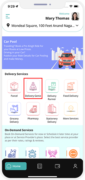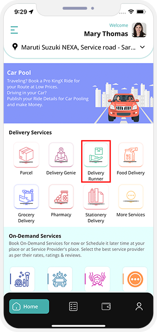 - Here the Driver / Delivery Driver / Service Provider is introduced to some very important features that can help them operate seamlessly as well as smoothly. This includes My Booking, Wallet, My Profile, etc. to name a few.
