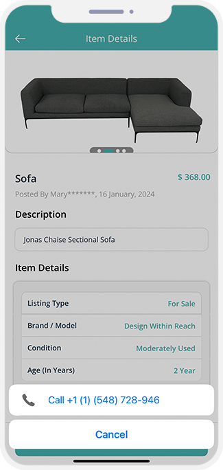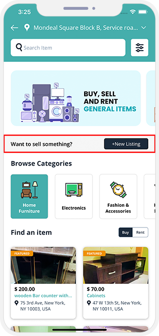 Users can post descriptions of items up for both for sale and for rent. Customers can access the listing and contact the sellers for info on buying or renting. Users have the option of listing their Items under Free or Paid Plans.
