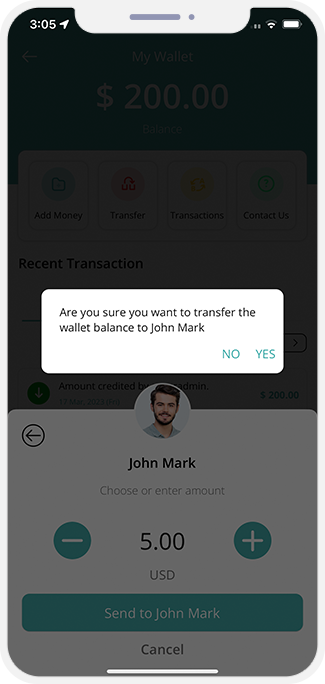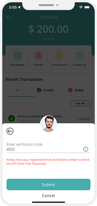 - All that they would need to do is select from the two options present in the wallet to whom they wish to send, the user or service provider and then choose their respective mobile number or email address and then they need to transfer the money from their wallet to the wallet of the service provider.