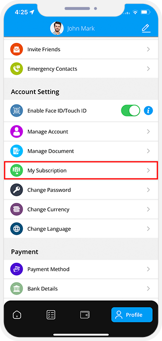 - All that the service provider needs to do is enter their application and then tap on My Subscriptions.