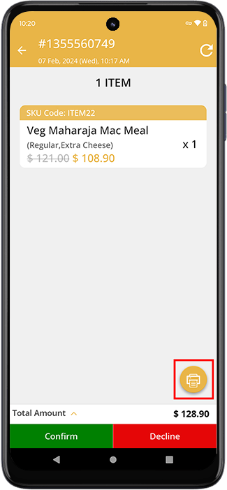 A unique feature to help restaurants efficiently manage the bills and process their orders and have it assigned to delivery drivers. As soon as the restaurant receives a new order from the customer, they shall receive the details of the same on their same. They now would be able to view the details of the same on their app. They now need to tap on KOT Print where KOT means kitchen order ticket and they would get the order printed via a wireless or Bluetooth printer and have it processed and confirmed and then assigned to the delivery drivers.