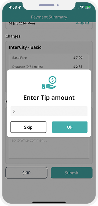 User can Tip the Driver.