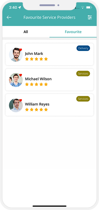 - The User can mark the Driver / Provider as favorite from his App. Also, he can remove the Driver / Provider from the favorite list anytime.