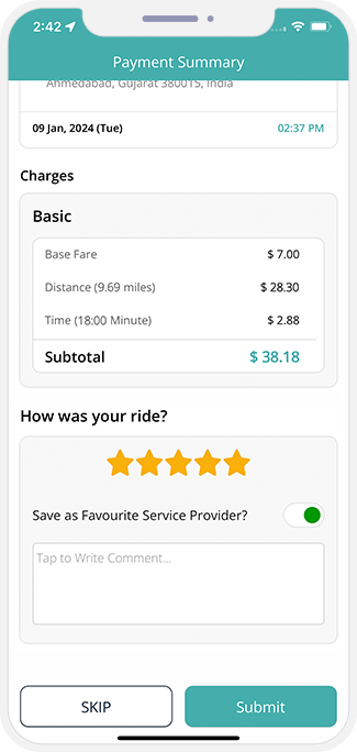 - Apart from this, the User will get the option to mark the Driver as a favorite so that next time they got the chance to do the Trip again with them.