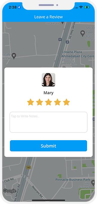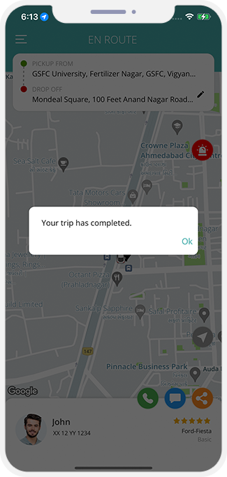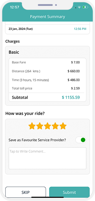- Once the Trip is completed the User will be prompted to rate the Trip and provide the feedback.