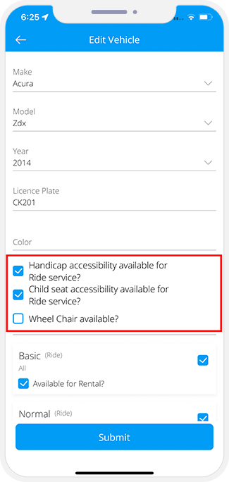 - Provider can manage his Services, Vehicle, Rates from here.