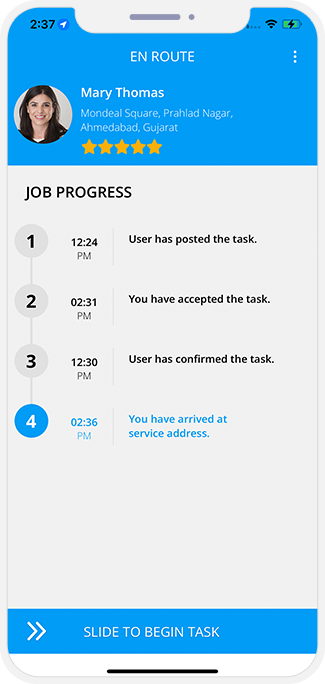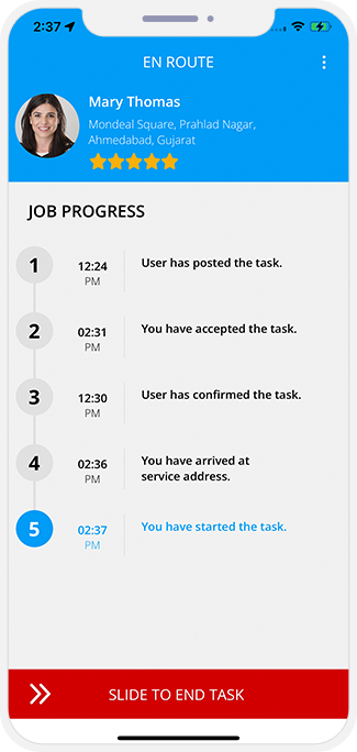 - Service Provider will then enter the OTP in his Application and start the Service.