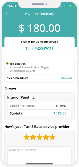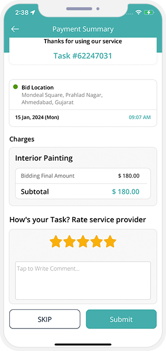 - The User as well as the service provider will be able to provide feedback about their experience with each other. They can give a star rating or write a review.