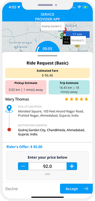 - Service Providers will be able to view the Heat Map and identify the areas that are generating maximum requests. This can be helpful so that they too can reach that area in order to pick up more rides or Deliveries.