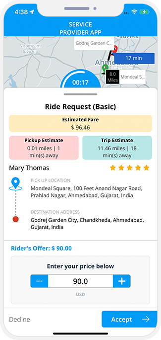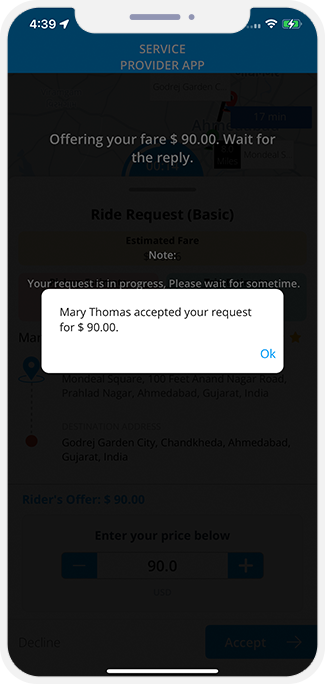 - This feature shows status of booked Ride, Jobs, Ordered Food, Grocery Delivery to Rider / Customer via Graphical Icons as in App Notifications.