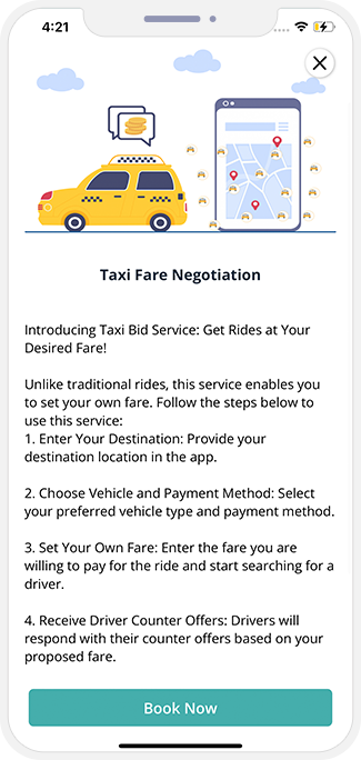 This is Uber kind of Taxi Booking Section. You will see all available Taxi Types her as per your location. And then can Hire or Rent a Taxi in very similar way as in Uber Taxi.