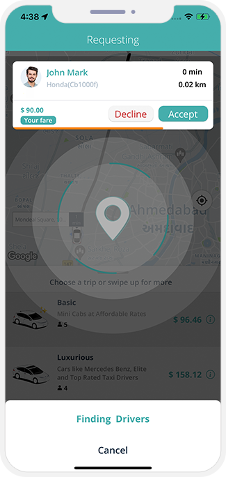 A seamless and unique taxi application that is available for the Android as well as the iOS platform. This app will enable your user to log in and book taxis whenever they want.